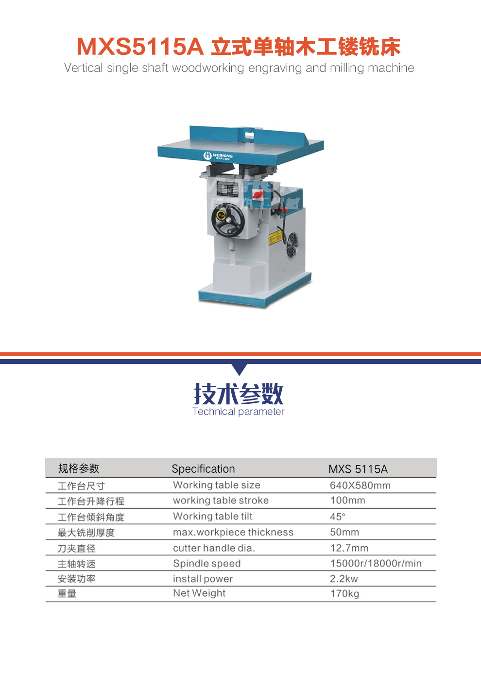 玮鸿机械-MXS5115A立式单轴木工镂铣床